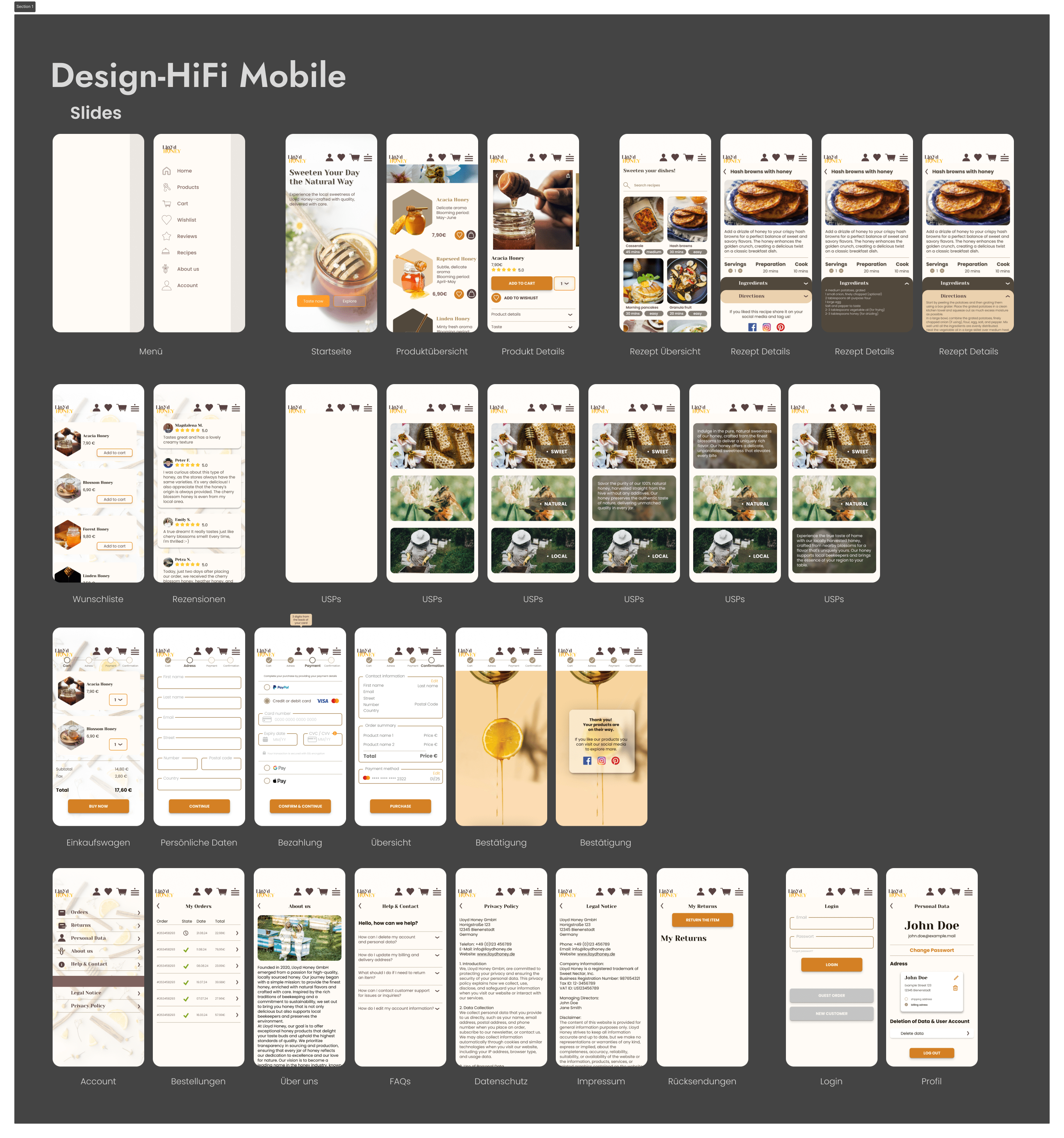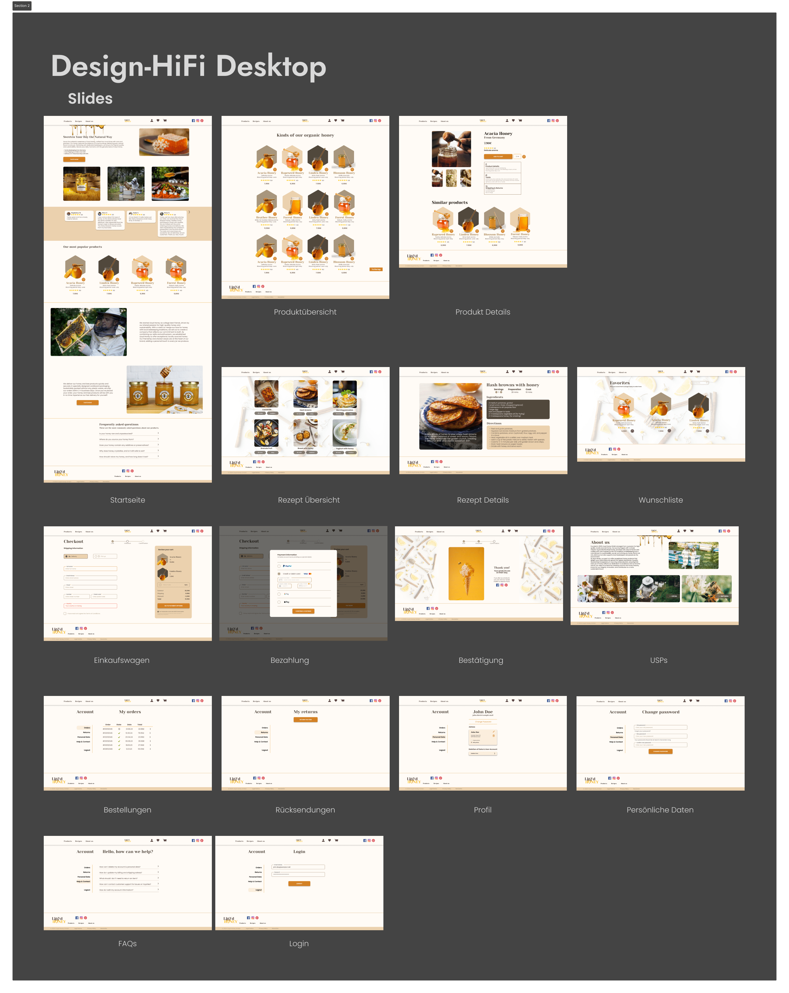 Ein zentrales Ziel war es, der Website über den reinen Produktverkauf hinaus einen echten Mehrwert zu verleihen. Dies habe ich durch die Rezeptseite erreicht, auf der Nutzer*innen direkt Honigrezepte entdecken und ausprobieren können. Dadurch wird die Seite nicht nur praktischer, sondern spricht die Kund*innen auch auf einer persönlichen Ebene an und stärkt die Bindung zur Marke.