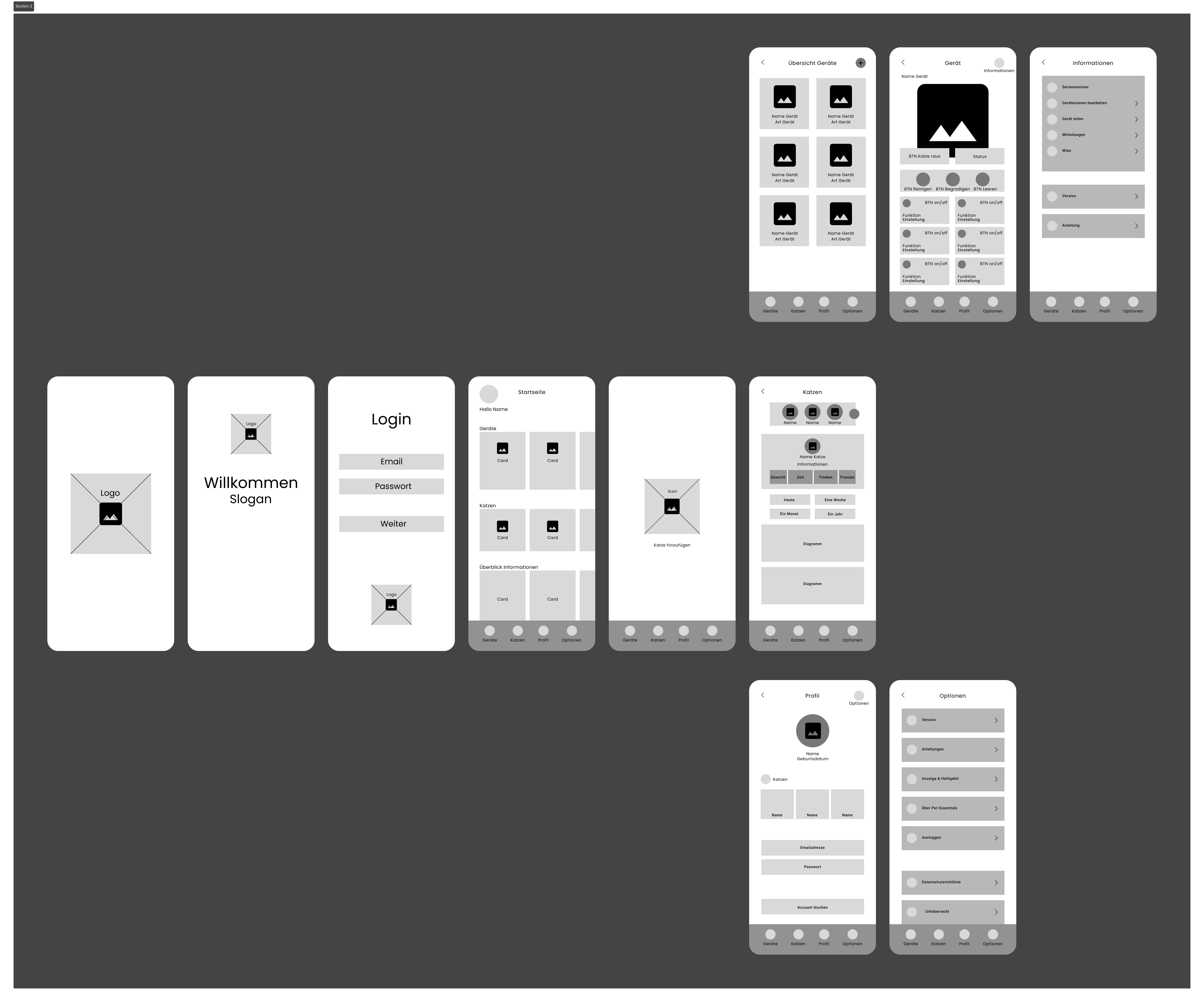 Ein zentrales Ziel war es, die Benutzeroberfläche so zu gestalten, dass die zahlreichen Funktionen der Geräte übersichtlich und leicht verständlich dargestellt werden. Ich habe darauf geachtet, dass trotz der Vielzahl an Funktionen die Oberfläche aufgeräumt bleibt und alle wesentlichen Informationen sofort ins Auge fallen. Ein weiteres Ziel war die klare und strukturierte Darstellung der hinzugefügten Haustiere, wobei ich auch eine persönliche Note beibehalten wollte. Durch die Möglichkeit, die Geräte individuell zu benennen, wird sichergestellt, dass ähnliche Geräte nicht verwechselt werden, was die Nutzererfahrung erheblich vereinfacht und die Bedienung intuitiver gestaltet.